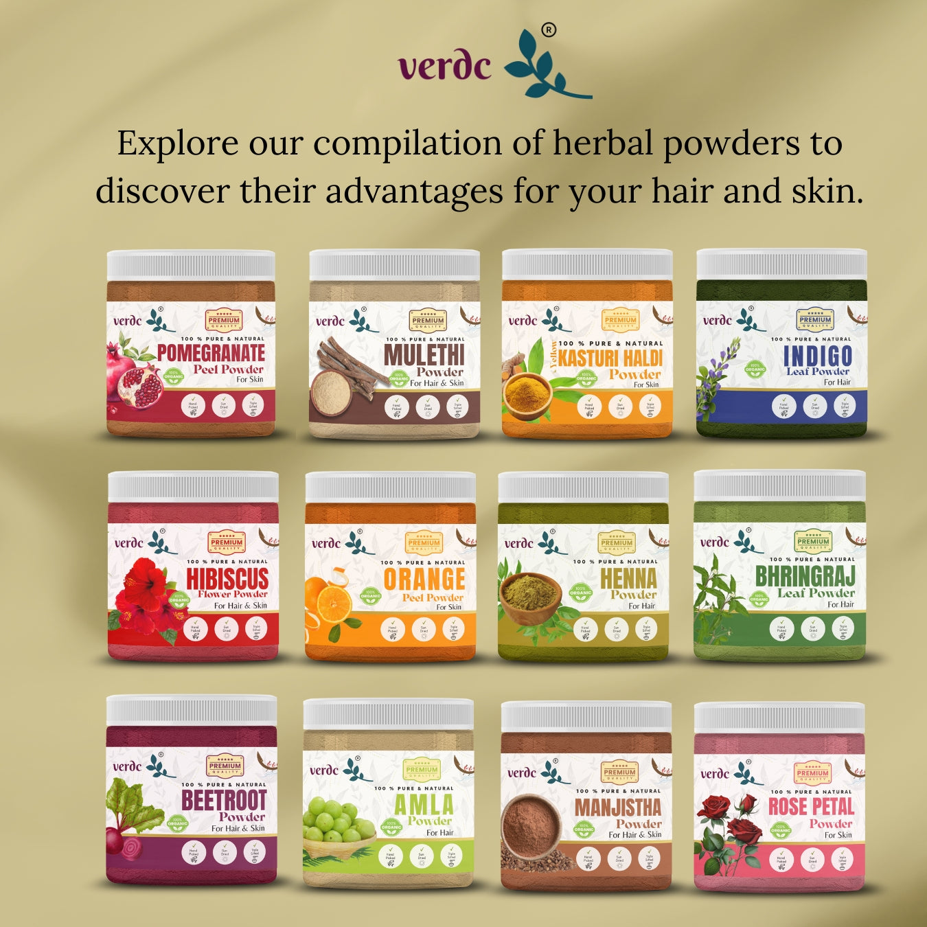 verdc natural henna powder is meticulously crafted to offer you the purest form of henna, ensuring rich, dark stains that last long. verdc’s Henna powder contains benefits such as antifungal and antimicrobial properties, which leave a soothing and cooling effect on your scalp. verdc’s chemical free, organic, 100% pure herbal henna gives natural colour, shine and conditioning to your hair.