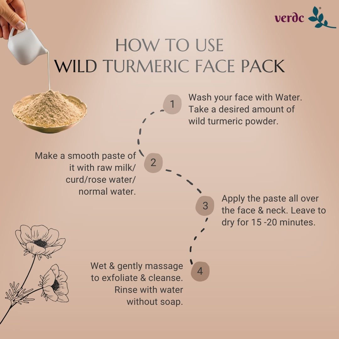 - Illuminate Your Skin: Elevate your skin's innate radiance with our Wild Turmeric / Kasturi Manjal Powder face pack, meticulously formulated to foster a healthy glow, while refraining from making unsubstantiated claims about skin whitening or brightening.